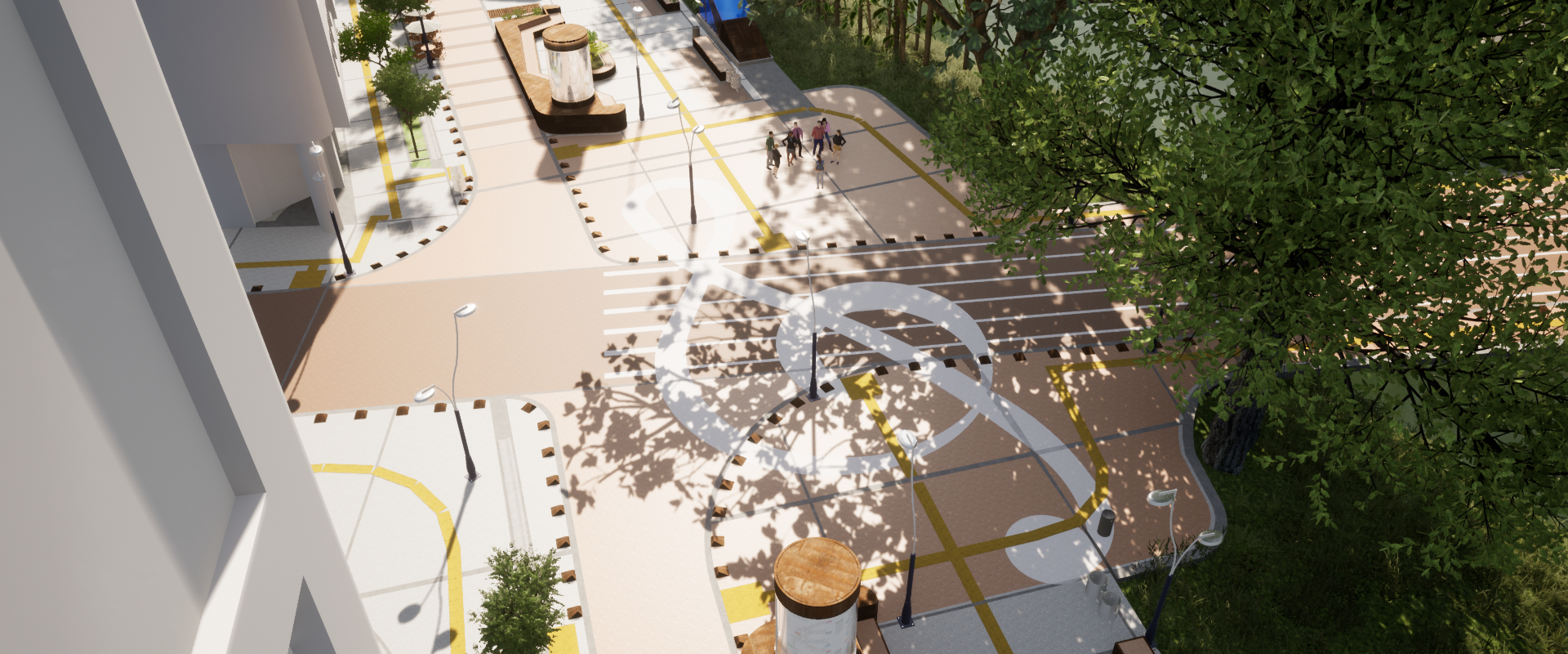 En el componente de espacio público, se desarrollaron los diseños para la Secretaría de Desarrollo Económico en el marco del proyecto Consolidación de las Áreas de Desarrollo Naranja de Santiago de Cali, orientado a estructurar áreas urbanas competitivas para el desarrollo económico sostenible. El proyecto identifica el bulevar como Área de Desarrollo Naranja y establece zonas estratégicas de convergencia social, cultural y económica, fortaleciendo la articulación entre espacio público, actividad productiva y dinamización urbana.